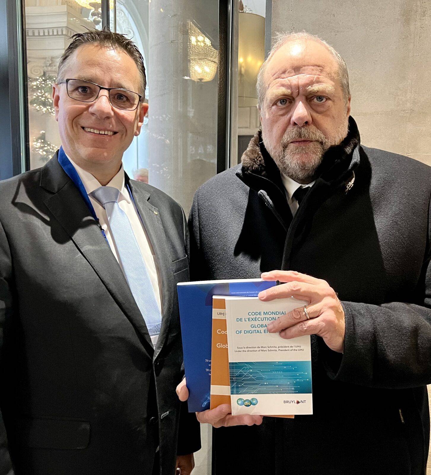 At the end of the official sequence, UEHJ president Marc Schmitz took the opportunity to present a selection of UIHJ publications such as the Global Code of Enforcement and the Global Code of Digital Enforcement to H.E. Eric Dupont-Morretti.